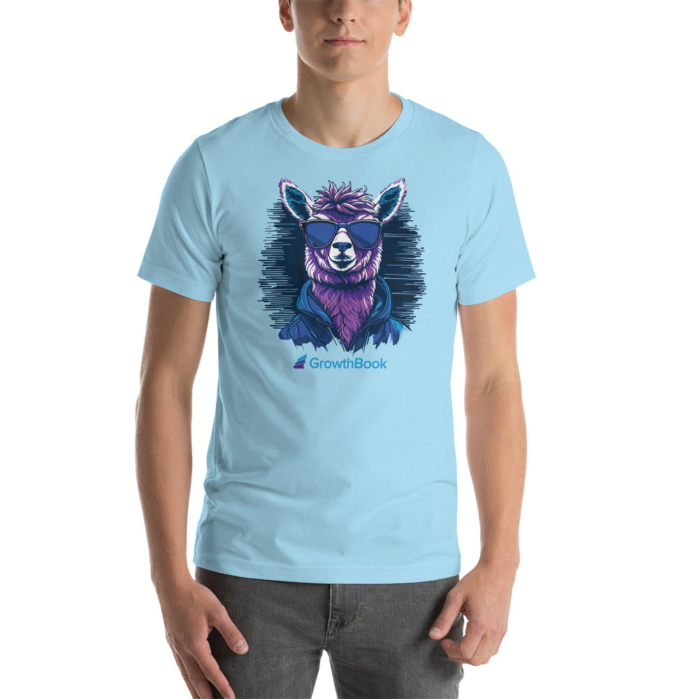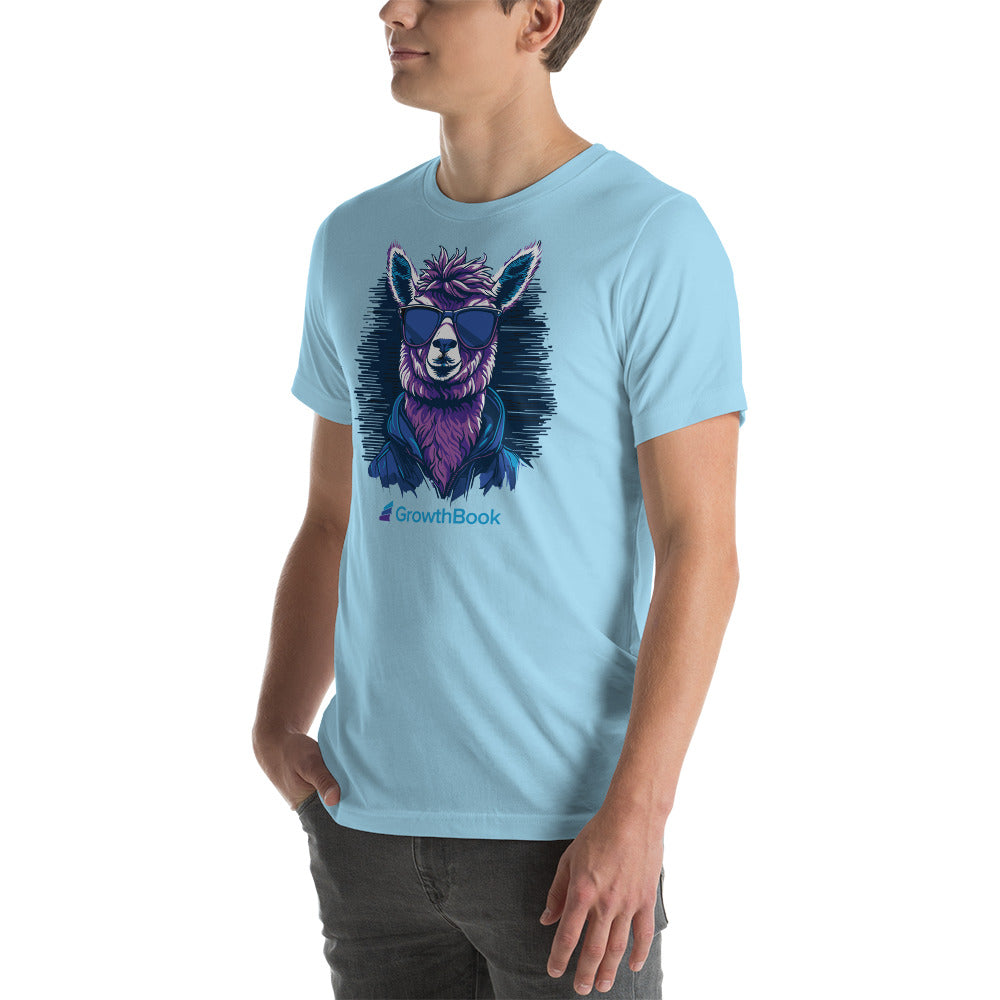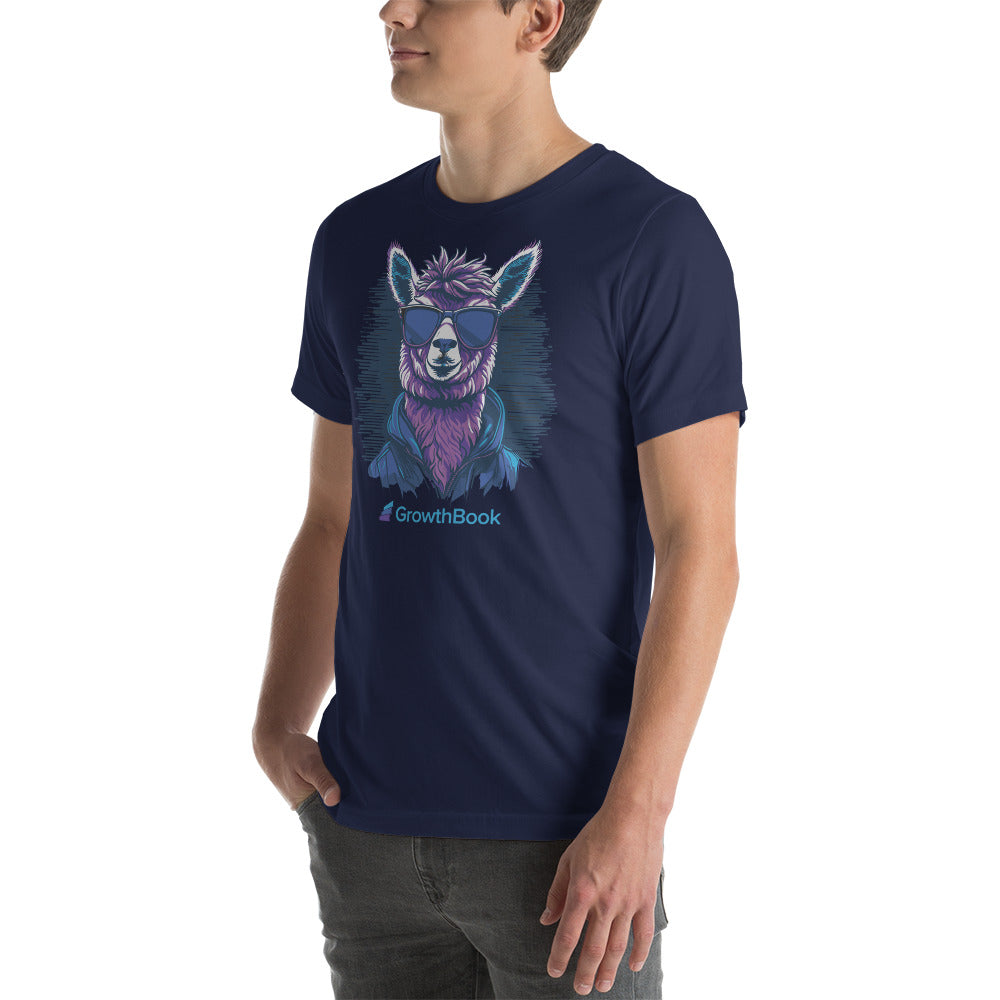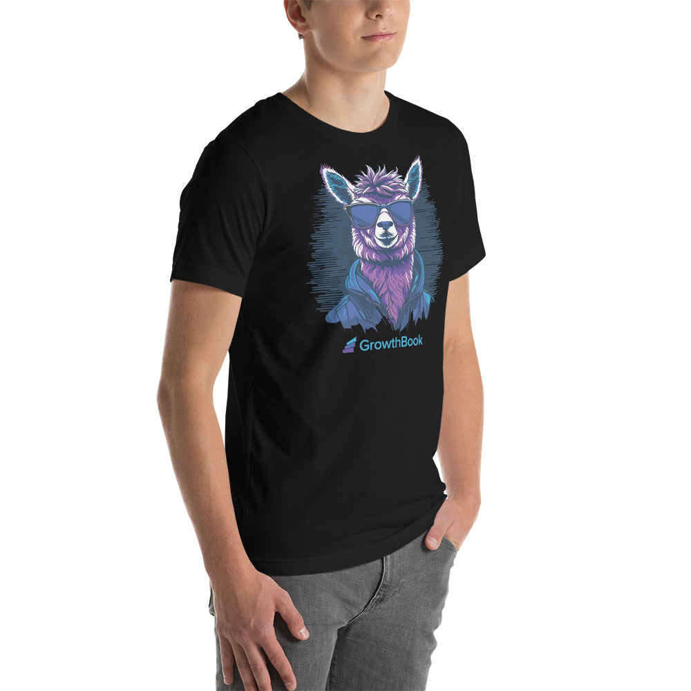 T-shirts are a dime a dozen, but this one stands out from the pack, or herd. It features a llama and the GrowthBook logo. It’s super soft, breathable, and has just the right amount of stretch.
