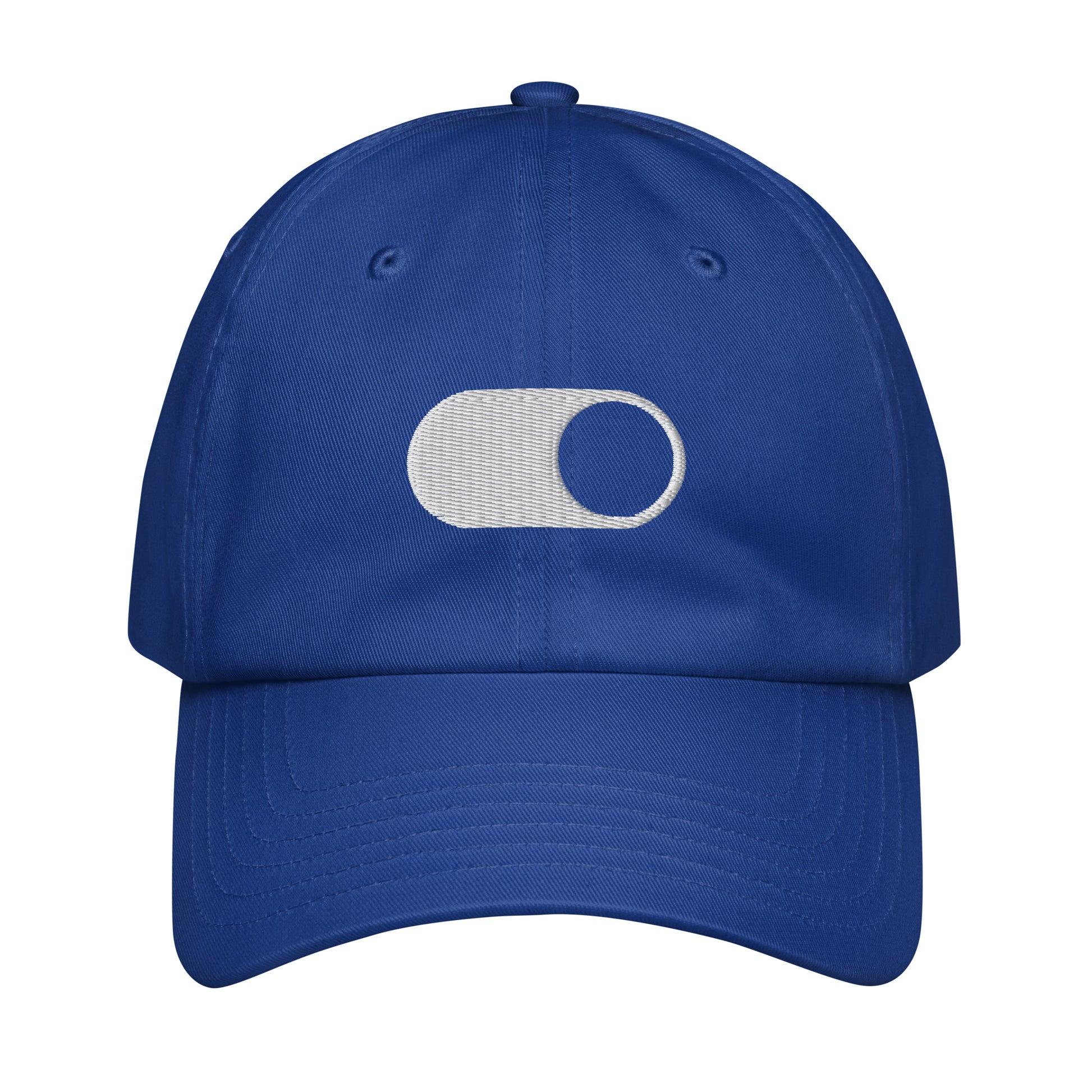 This minimalist design based on GrowthBook's feature flag toggle switch 3d puff embroidered on the front. On the back, there is a tasteful GrowthBook logo. All embroidered on a classic dad hat from Under Armour®, designed for comfort and durability. The built-in HeatGear® sweatband wicks away moisture, making this hat ideal for hot summers and dynamic workouts.